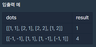 - -256 < dots[i]의 원소 < 256